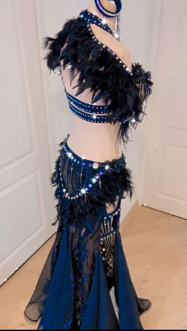 Costume noir et plumes