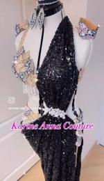 Enveloppée de perles nacrées et de sequins scintillants, cette création inspirée de la Grèce antique est le mariage parfait du glamour et de la mythologie.Un drapé fluide, une coupe asymétrique, des détails finement strassés et des perles frangées… un hommage à l’élégance intemporelle