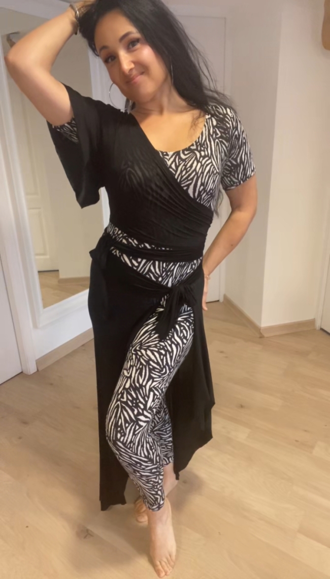 Jupe paréo fendue à nouer 🌬️ : légère et aérienne pour accentuer la dynamique de vos mouvements tout en laissant apparaître l'imprimé zèbre dessous