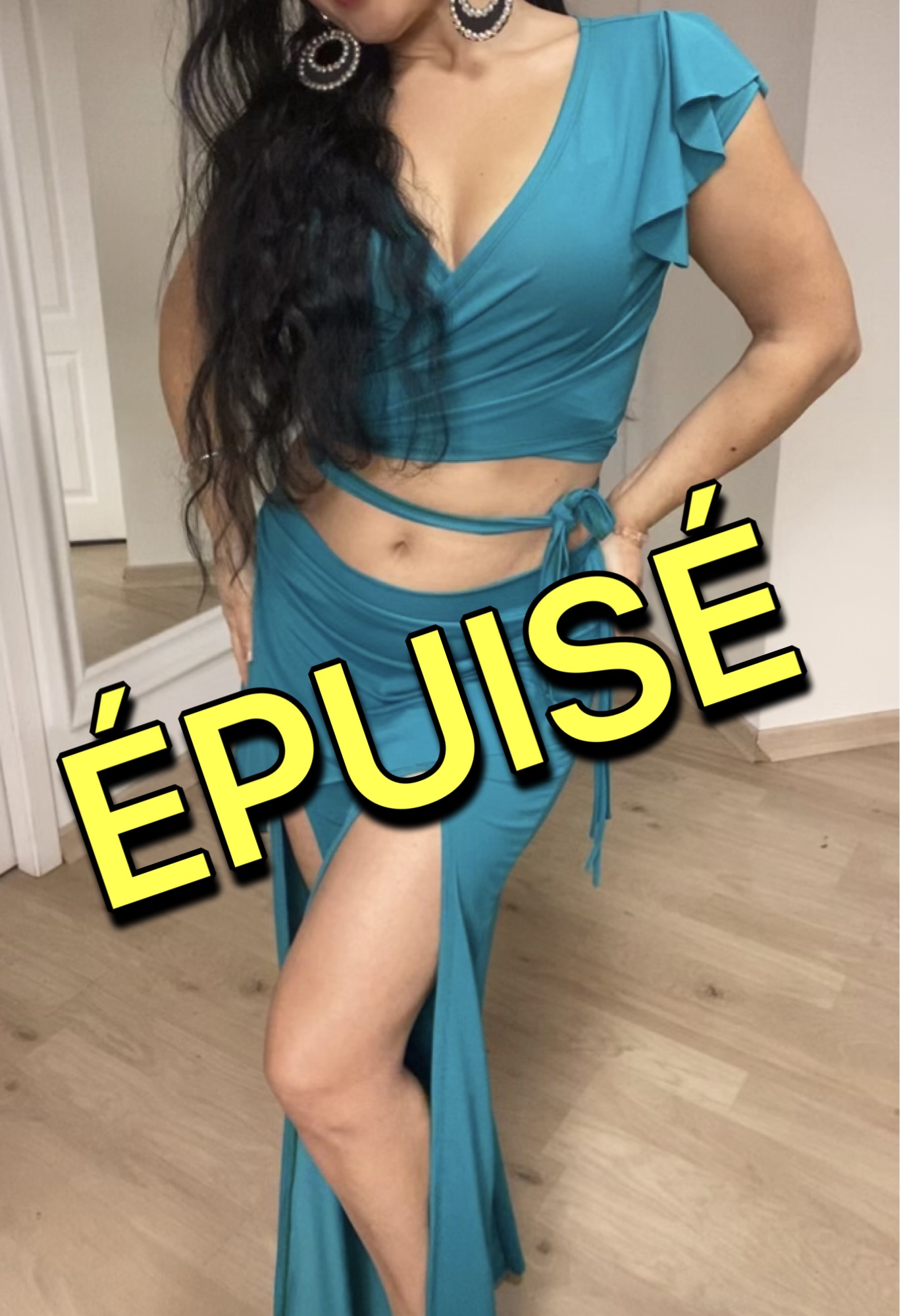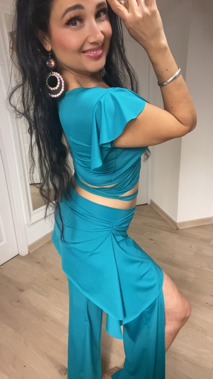 👗 Pantalon fendu & sa jupette fluide pour des jambes interminables👚 Top cache-coeur épaules volantées pour souligner votre port de tête