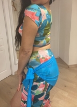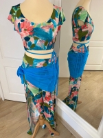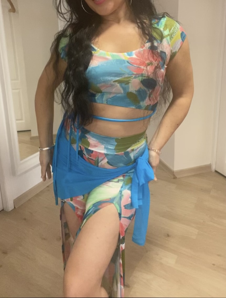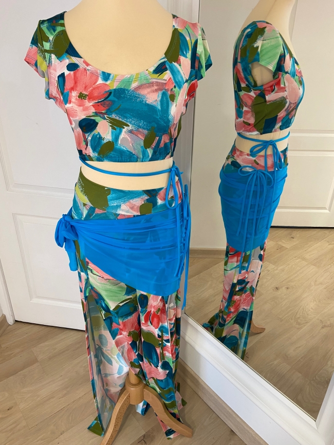 🌿🌸 Motifs colorés fluides & artistiques🩳 Une coupe fendue pour liberté totale de mouvement🔵 Foulard de hanche intégré à nouer pour accentuer le déhanchement ➰💙