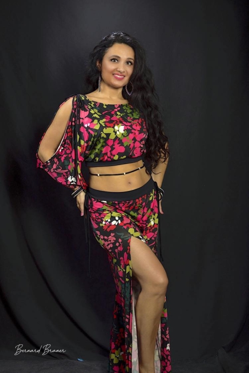 Dans un imprimé floral magnifique, cet ensemble top + pantalon fendu et sa jupette incorporée sera du plus bel effet durant vos cours et stage