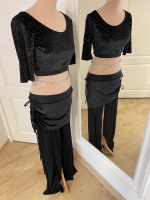 Un très bel ensemble noir composé d'un set de velours pailleté et son pantalon fluide fendu intégré