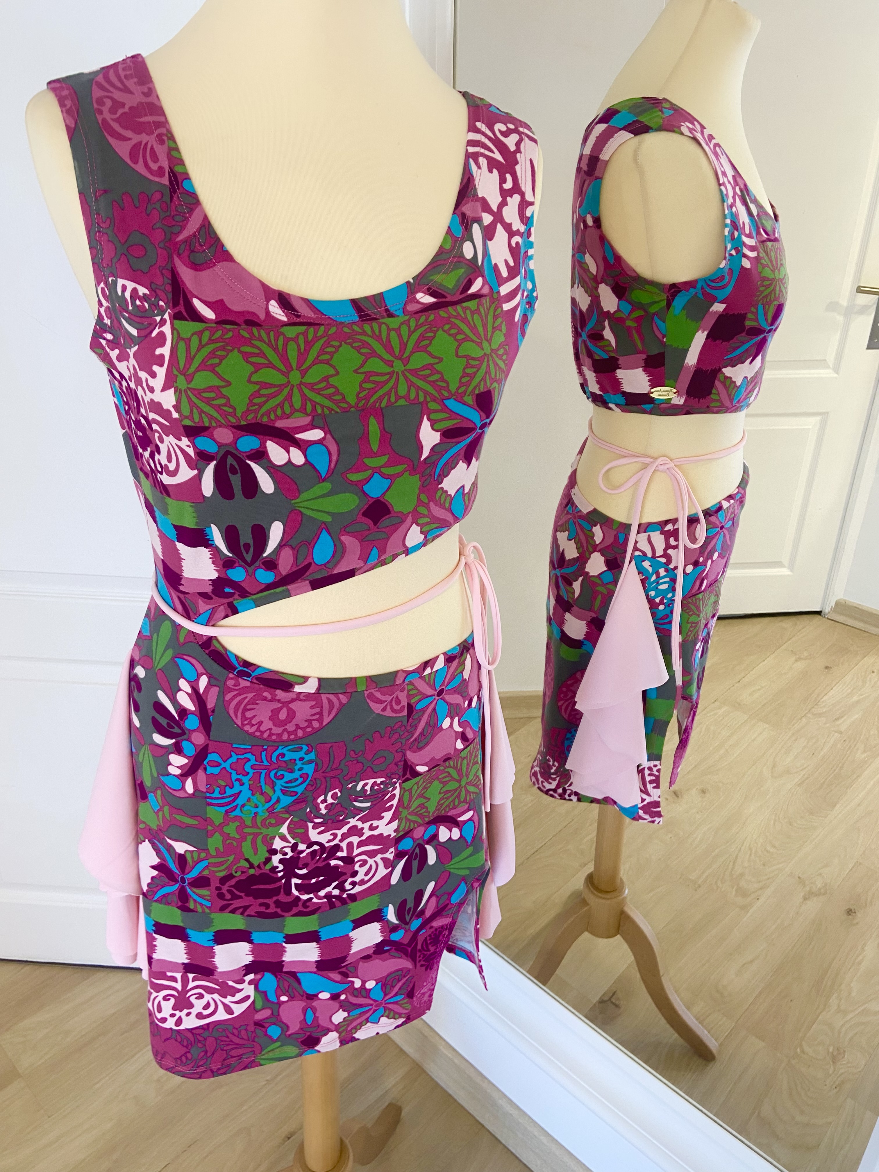✨ Ouverture diagonale à la taille avec lien à nouer pour sublimer la silhouette✨ Jupette fendue et froufrous sur les côtés pour accompagner chacun de vos mouvements